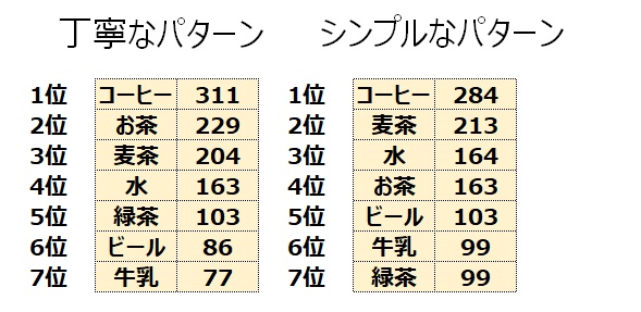 また、記入された内容を件数順に並べると、上記7位までに挙がる飲み物が同じでした。