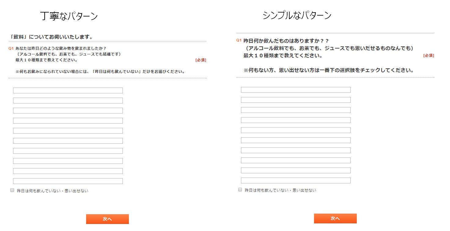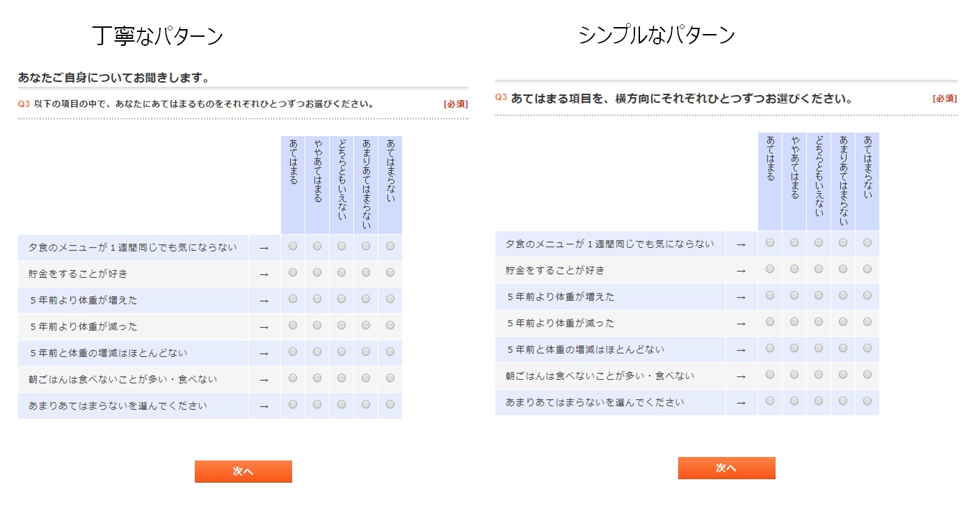 「同じ設問構成だが設問文を少し変更した2種類の画面を作成」し、
