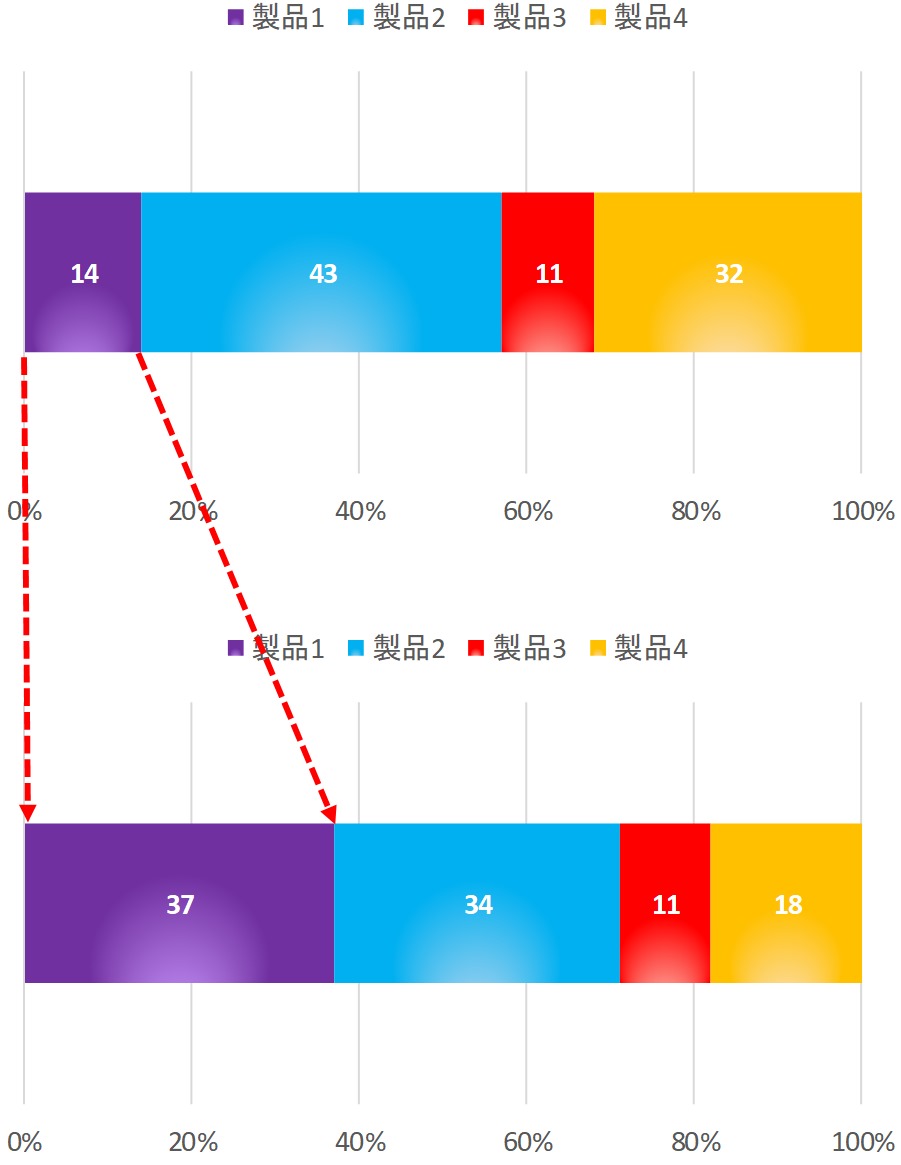 自社の「製品1」のマインドシェアが37%まで拡大します。