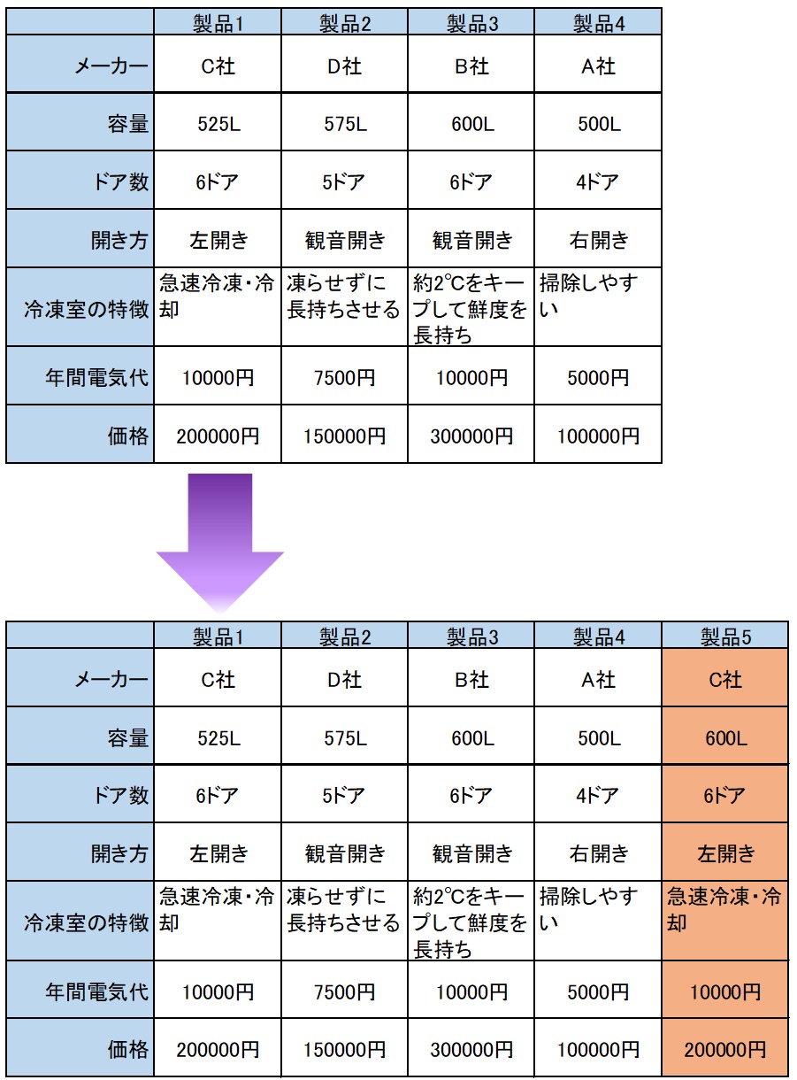 コンジョイント分析の概要(冷蔵庫の例)