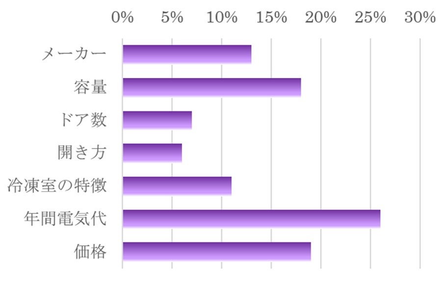 ▼最も平均重要度が高いのは「年間電気代」で26%、次いで、「価格」が19%で続いている。