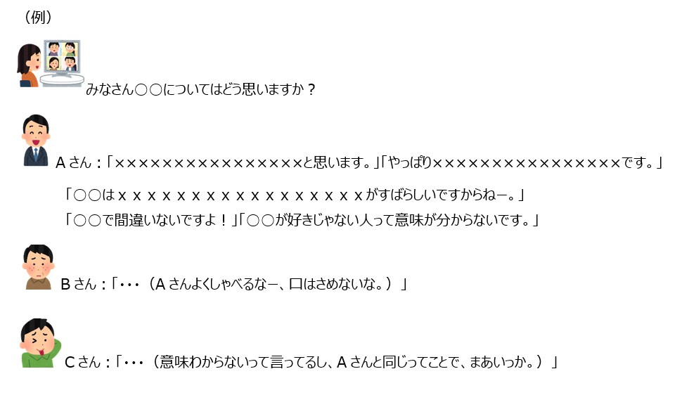 - Aさんが発言した内容はみんながそう思っているのか?