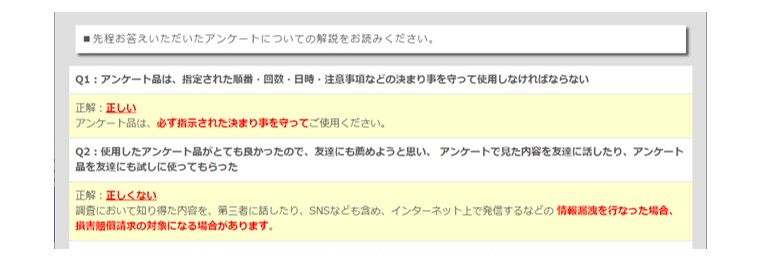 すべて正解しないと次に進めない、理解度確認アンケートを行い、ご参加にあたっての注意事項についての理解を深めていただきます。