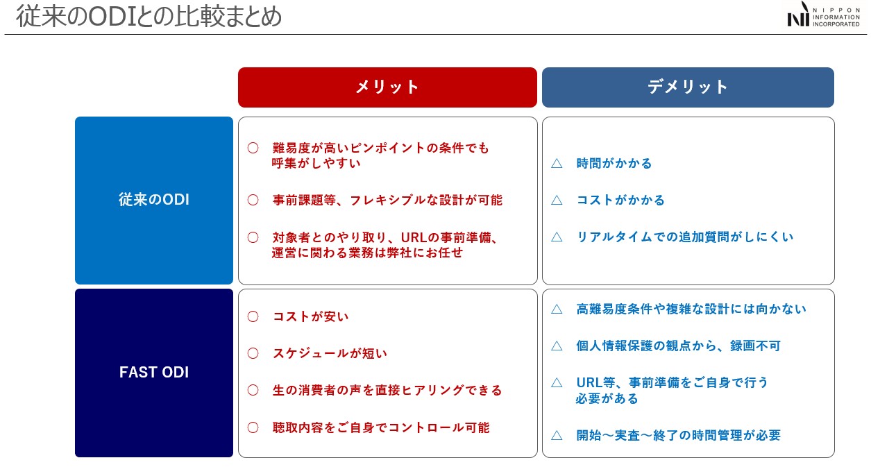 これだけだと、「従来のオンラインデプスインタビューをFAST ODIに切り替えた方がいいのでは?」とお考えになるかもしれませんが、少しだけ注意点があります。
