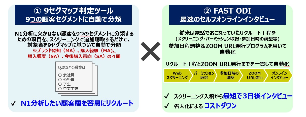 N1分析のためのオンラインインタビューをスピーディかつローコスト で実施可能です。