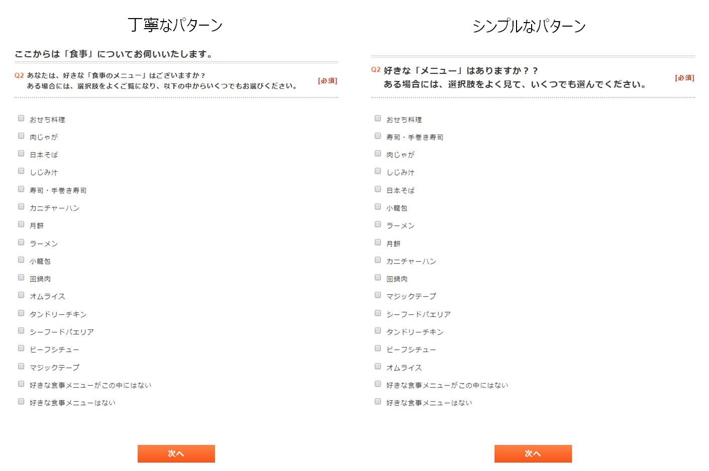 「同じ設問構成だが設問文を少し変更した2種類の画面を作成」し、