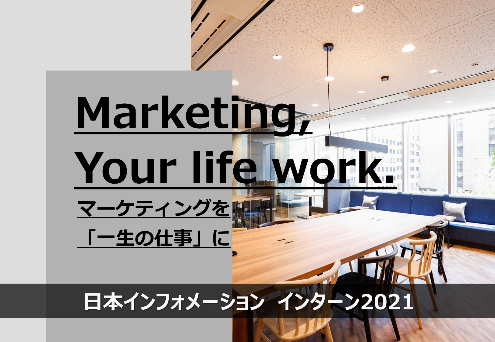 日本インフォメーションでは、2021年3月に大学および大学院卒業見込みの方を対象とした、1DAYインターンシップへの参加者を募集しています。 <開催日程 ※計3回> ・2020年2月19日(水)午前 ・2020年2月26日(水)午前/午後 マーケティングリサーチの世界で働きたい方、興味のある方は是非ご検討ください。 皆様のご応募お待ちしております! 新卒採用情報ページはこちらから インターンシップへのエントリーはこちらから ※「リクナビ」経由にて応募を受け付けております。 日本インフォメーション株式会社 担当:竹中 TEL:03-3542-9441 FAX:03-3542-9447 受付時間:午前10時-午後5時(土日・祝日を除く)