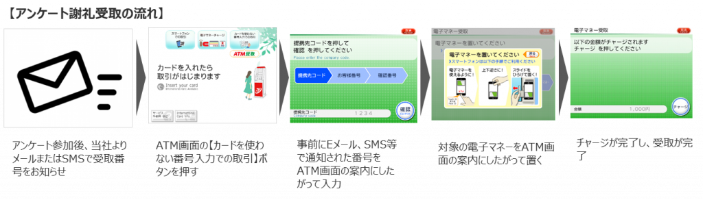 本件により、当社のアンケートご協力者の謝礼金は、セブン銀行ATMから現金を引き出すことなく全額電子マネーへのチャージにより、受取可能になりました。このサービス提供は、アンケートご協力者の利便性並びに参加率の向上に繋がるものです。電子マネー受け取りサービスの提供は、マーケティングリサーチ業界に限らず、本件が初めてとなります。