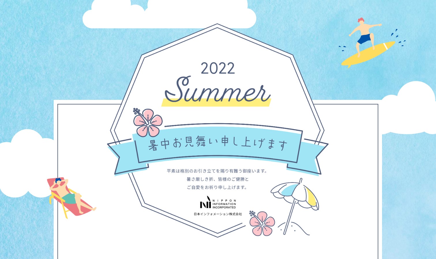 炎暑厳しき折、皆様のご健勝をお祈り申し上げますとともに、今後とも変わらぬお引き立ての程、宜しくお願い申し上げます。