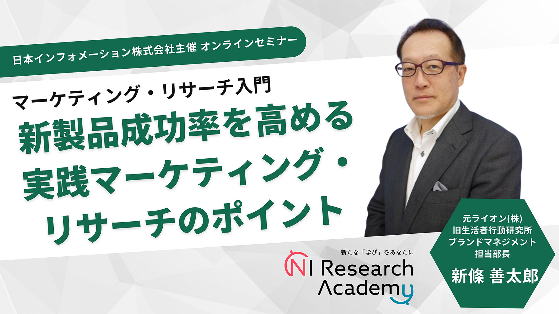 そこで本セミナーでは、約30年間にわたりライオン株式会社でマーケティングに携わり第一線で活躍されてきた新條様を講師にお迎えし、特に新製品・新サービスの開発段階において起点となる、“より良い製品コンセプトづくり”に対するリサーチの関わり方、“筋の良い仮説づくり”と製品コンセプトの評価・ブラッシュアップに重要な視点の解説をメインテーマに据え、新製品・新サービスの成功率を高めていくマーケティング・リサーチの実践ポイントについてお話ししていただきます。