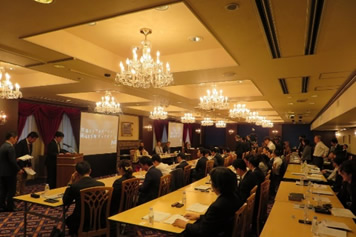 年に2度、全社員が参加して当期全社経営計画の発表及び、各部署の行動計画を発表します。各部署意気込み高く計画をプレゼンします。