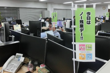 月初めに各社員ごとに月2日以上のノー残業デーを設定し、定時帰社を奨励しています。