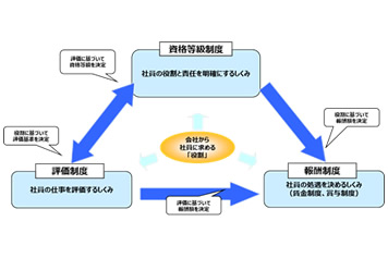 「役割・責任」が明示された「資格等級制度」「評価制度」「報酬制度」が設定されています。目標管理制度(MBO)で評価を実施しています。