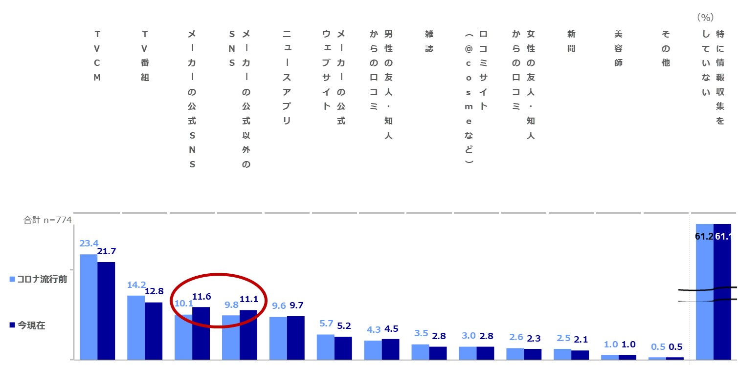 ⑥|美容の情報収集ツール(コロナ流行前と今現在の比較)