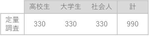 サンプルサイズ:定性調査 4サンプル(高校生1名、大学生2名、社会人1名)