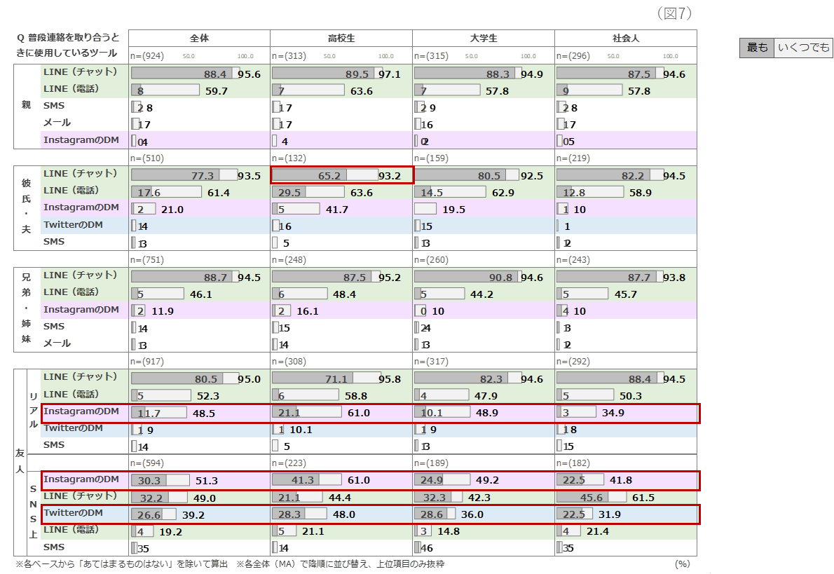 - InstagramのDMが、LINEに代わる友人とのZ世代のコミュニケーションツールとして、特に高校生・大学生において定着