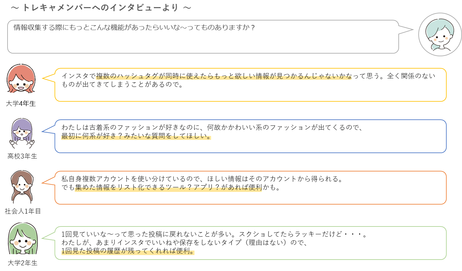 調査方法:定性調査 トレンドキャッチプロジェクトのメンバー