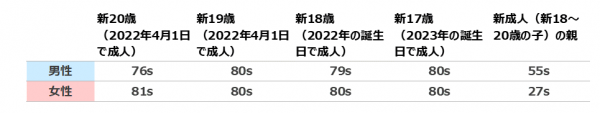 ※本調査の年齢標記「新」は、2022年4月1日~2023年3月31日の誕生日で新たに迎える年齢標記を表し、調査時点の年齢とは異なります