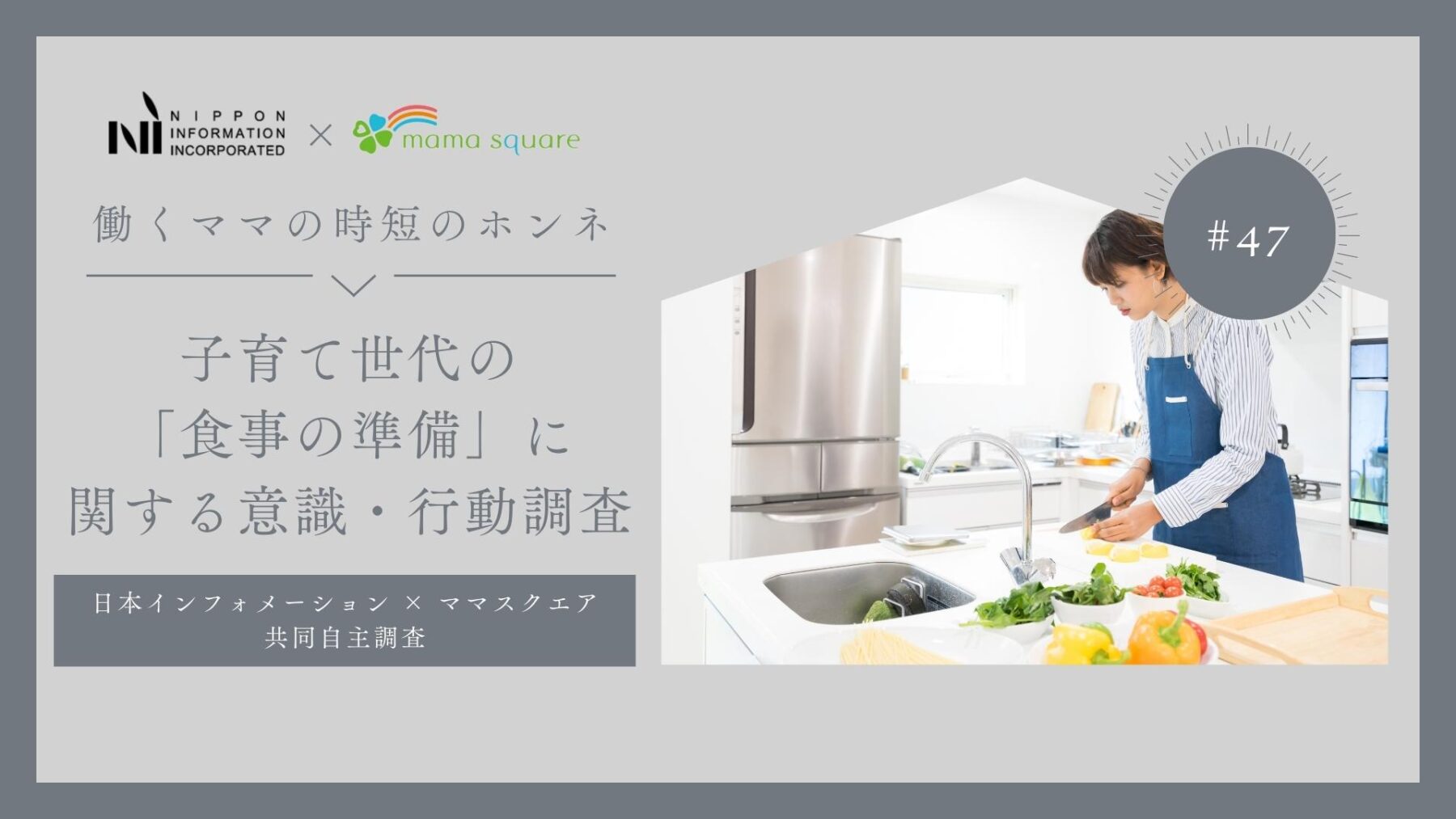 そこで、働くママたちは仕事と家庭を両立するために、どのような工夫を行い、どのようなサービスを利用しているのか、特に「食事の準備」に関する意識・実態を把握するため本調査を企画しました。協業企画の一つとして2社で、ママスクエアの従業員に対して本調査でホンネに迫りました。