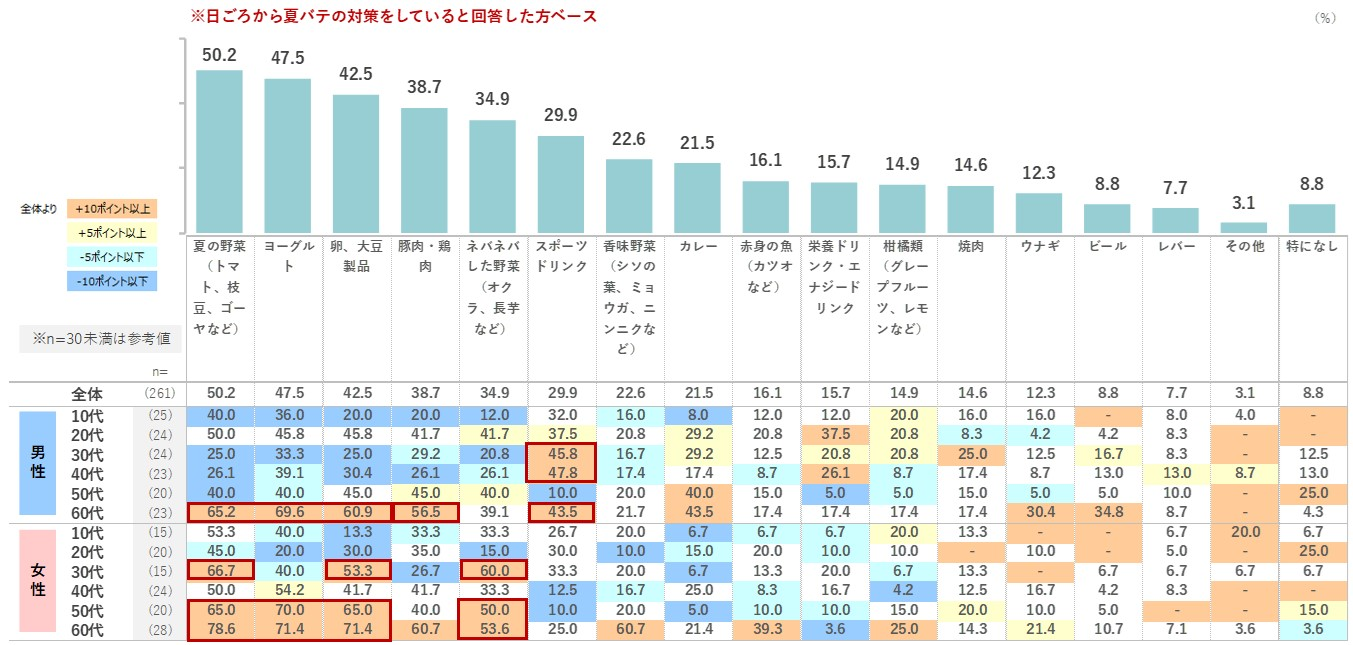 「夏の野菜」50.2%、「ヨーグルト」47.5%、「卵・大豆製品」42.5%が上位。