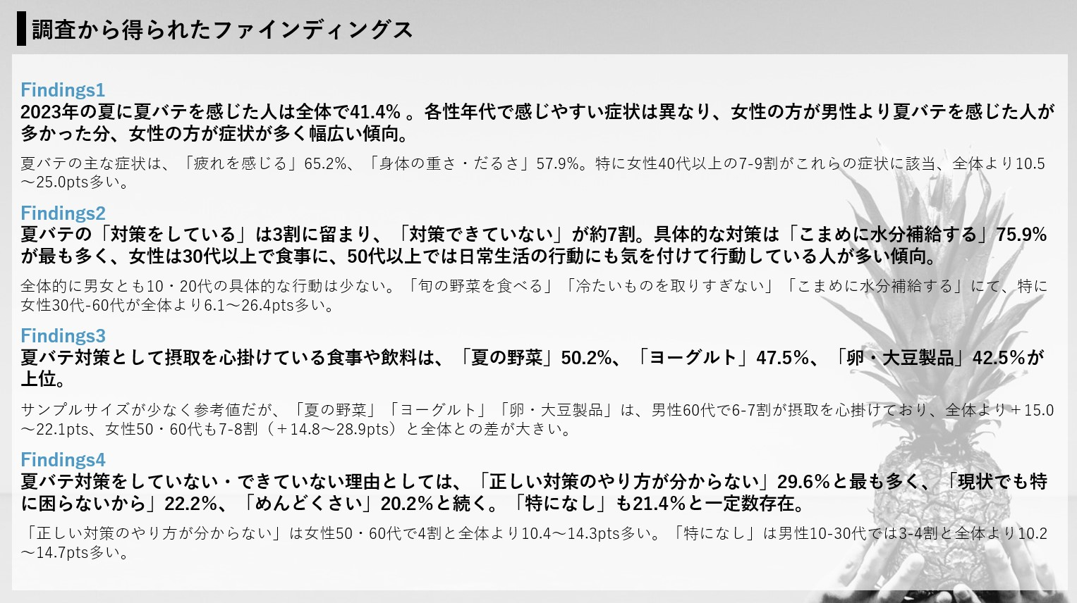 以上、~残暑が続くイマドキの「夏バテ」対処法とは~気温変化に伴う身体ケアに関する意識・行動調査を抜粋してお伝えしました。