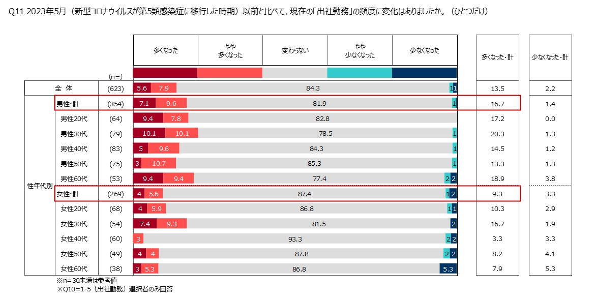 ⑦|2023年5月以前と比べた出社頻度の増減