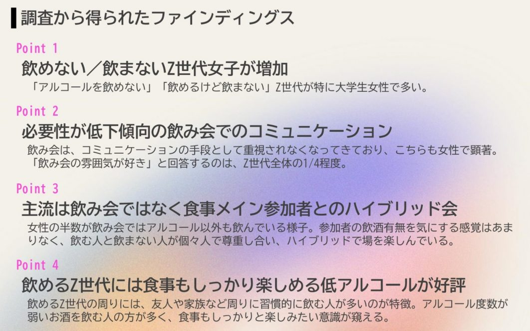 以上、「Z世代のイマ ~アルコールとの距離感編~」として結果のレポートをお伝えしました。