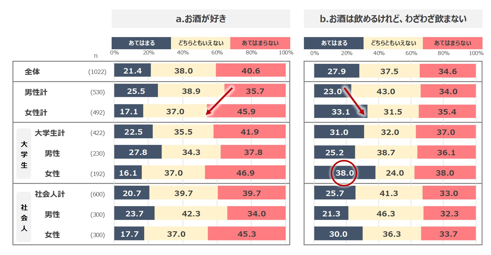 アルコールが好きなZ世代はどんな人?(アルコール好意有無別)