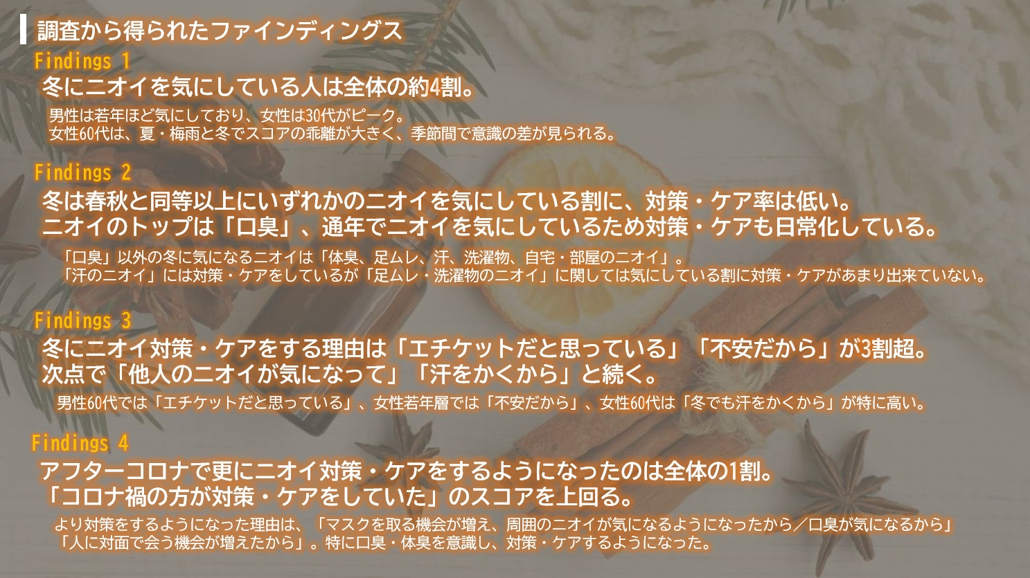 以上、 ~アフターコロナの意識変化も確認!~冬のニオイ対策に関する意識実態調査を抜粋してお伝えしました。