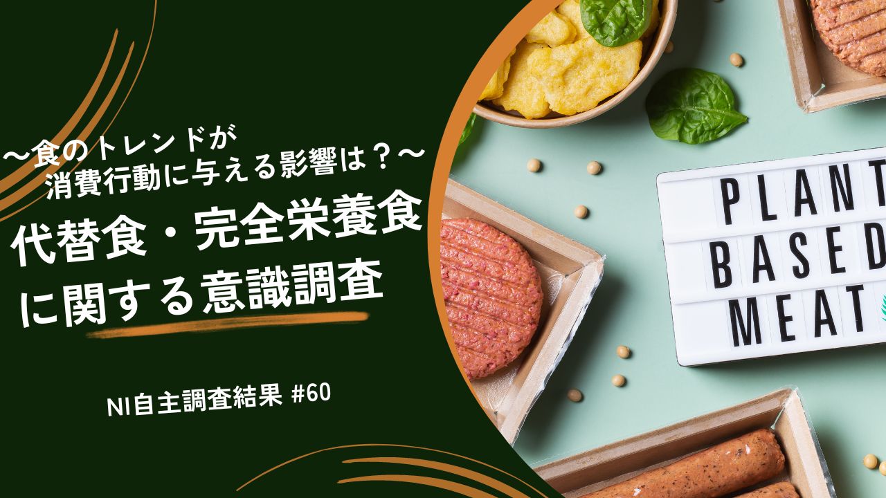 そこで、日本インフォメーション株式会社(代表取締役社長:斎藤 啓太 以下、日本インフォメーション)では、「代替食」に関する現状の消費者の意識、また大手企業の参入により急速に認知が拡大した「完全栄養食」や食品表示についても調査しました。
