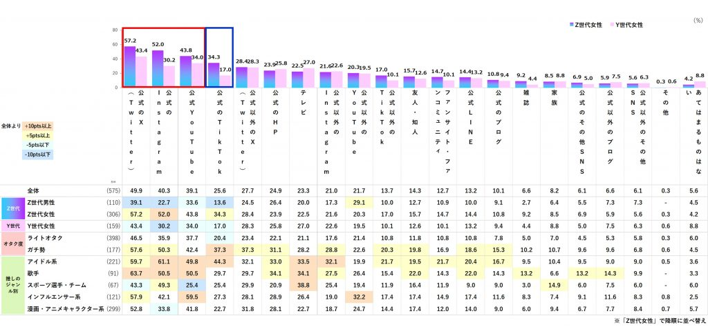 推し活の情報収集源は公式SNSが主流、特に公式Xが1位を独占。Z世代は推しとの出会いにもSNSが上位に