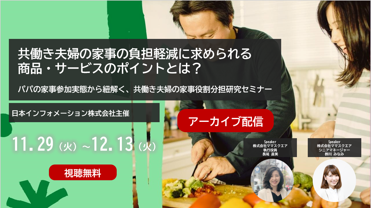 パパの家事参加実態から紐解く、共働き夫婦の家事役割分担研究セミナー」アーカイブ録画配信開始