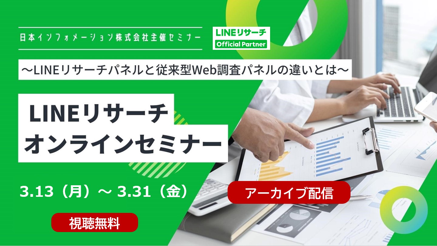 今回は、LINEリサーチ認定「オフィシャルパートナー」の1社である日本インフォメーション株式会社主催で、「LINEリサーチ」のオンラインセミナーを開催します。