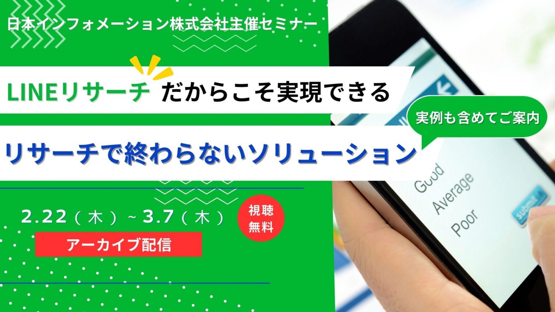 今回は、LINEリサーチ認定「オフィシャルパートナー」の1社である日本インフォメーション株式会社主催で、「LINEリサーチ」のオンラインセミナーを開催します。