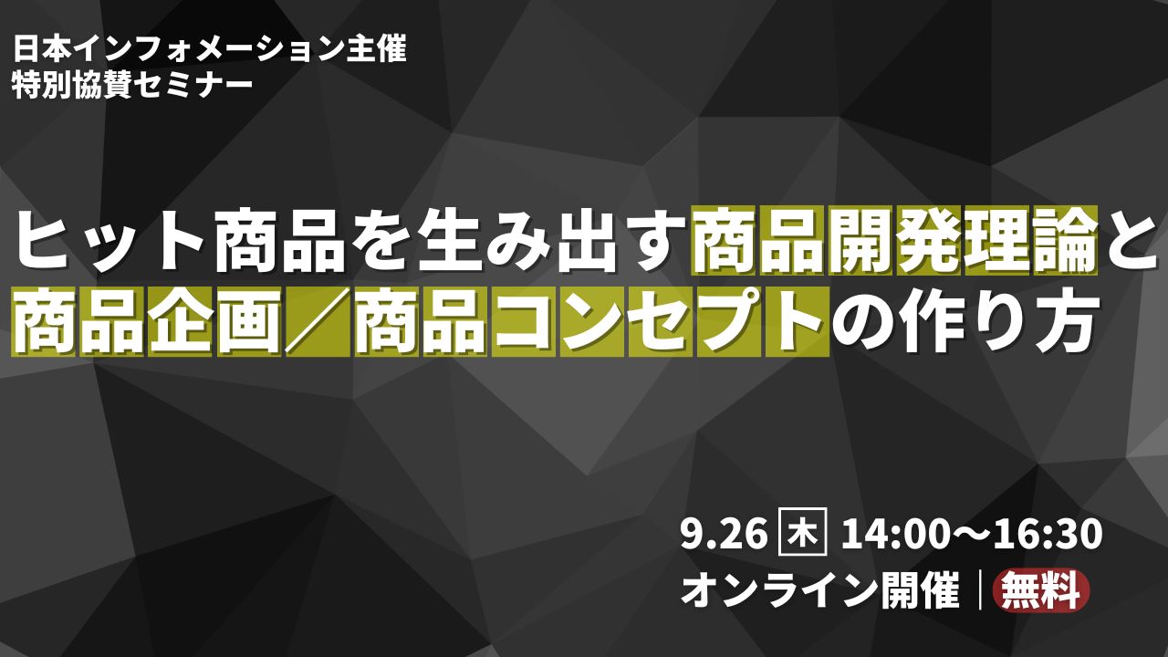 本セミナーはヒット商品の開発を目指して日々努力されている商品開発部門の管理職や開発スタッフの皆様、マーケティング部門の皆様にとって非常に有意義なセミナーです。ぜひご参加ください。