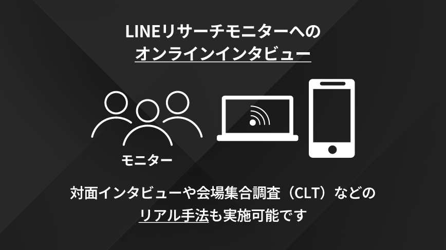 さらに、オフィシャルパートナーでも当社しか認定されていない、LINEリサーチモニターを対象としたオンラインインタビューメニューも提供可能です。